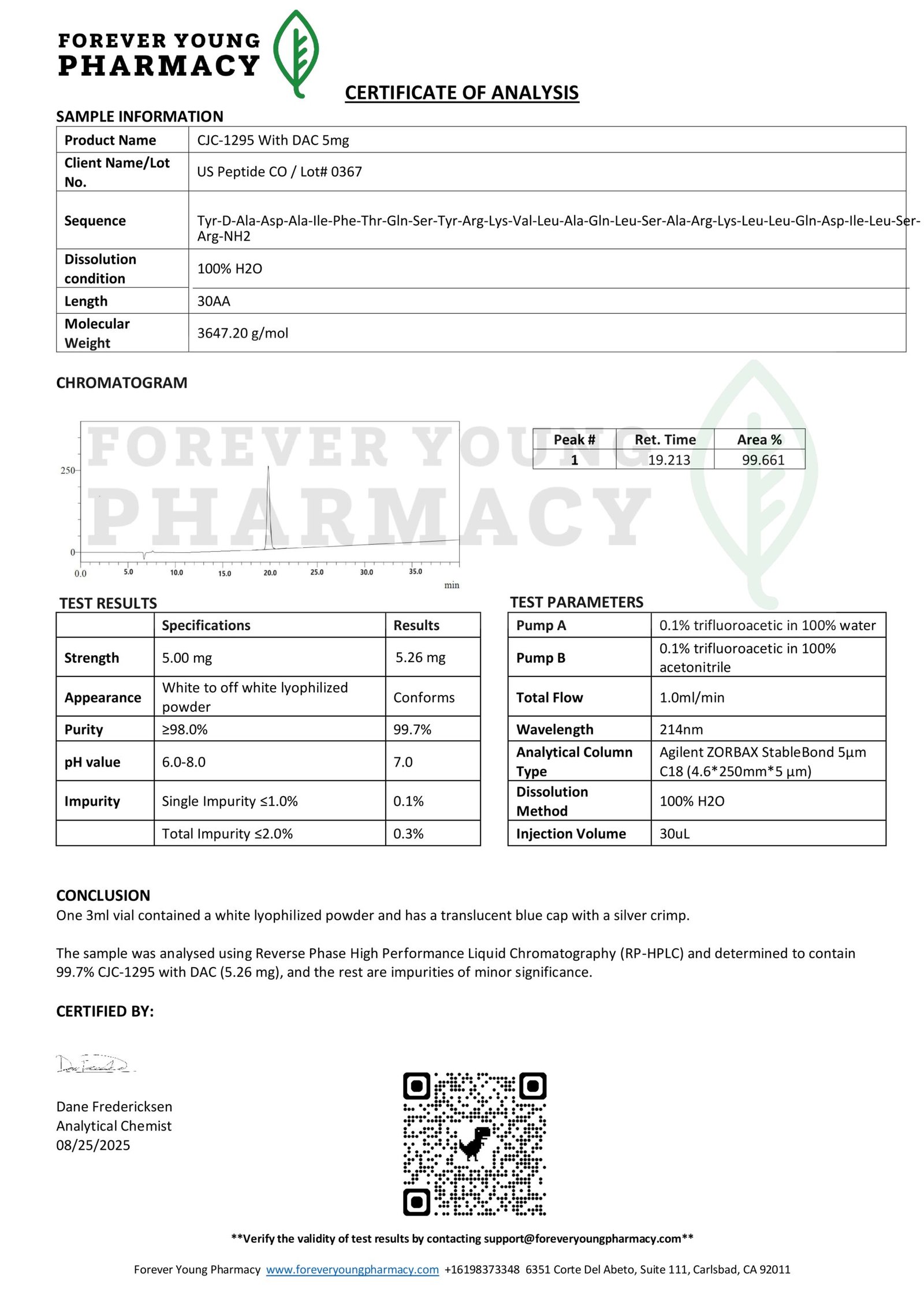 Trust US Peptide Co for premium CJC-1295 DAC research peptides backed by comprehensive testing and detailed documentation.