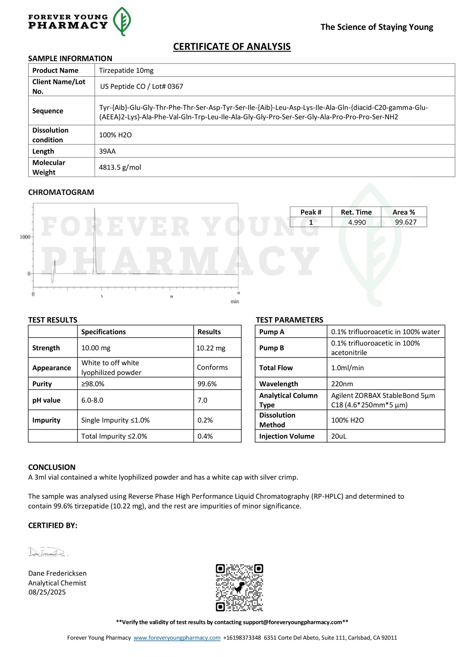 Every batch undergoes rigorous third-party testing through Freedom Diagnostic Testing, ensuring molecular weight verification, purity confirmation, and bioactivity screening with complete Certificate of Analysis documentation.
