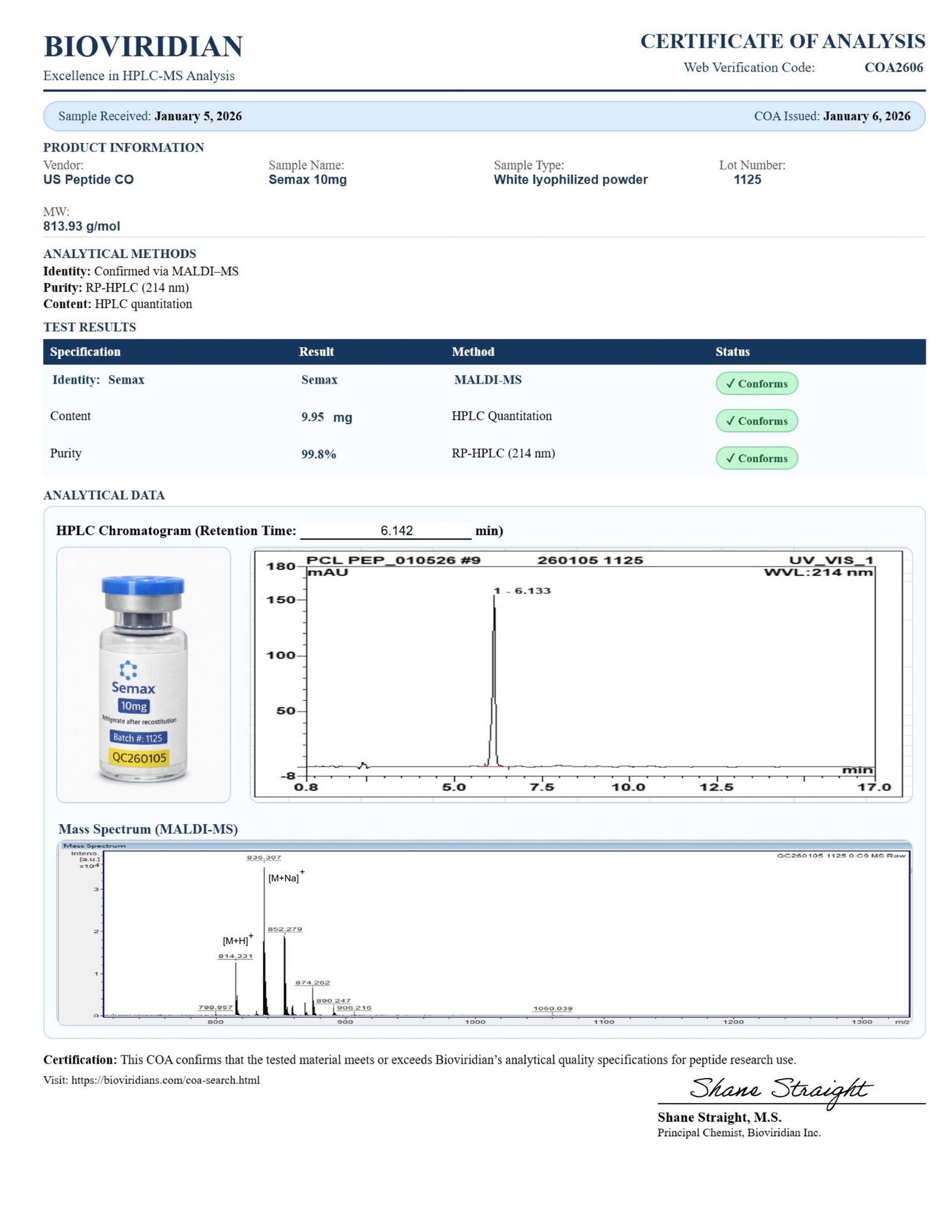 Each vial of Semax 10mg includes: