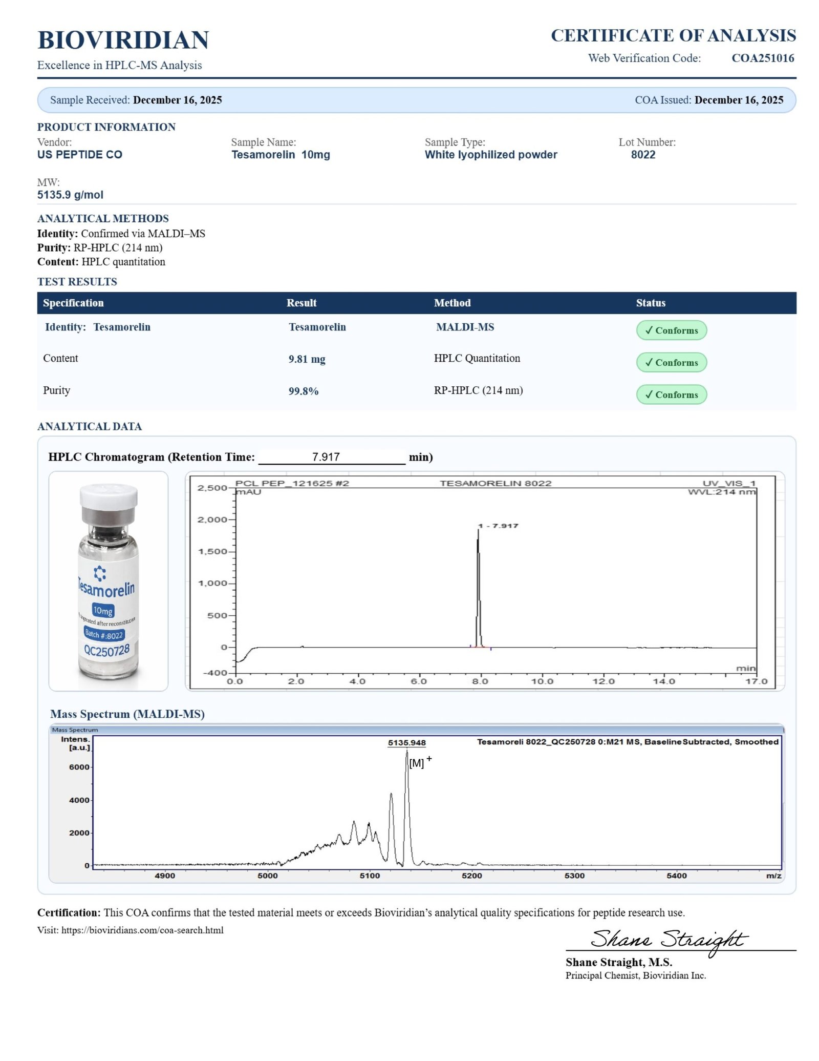 Every Tesamorelin 10mg vial undergoes comprehensive third-party testing at USA-based laboratories, ensuring: